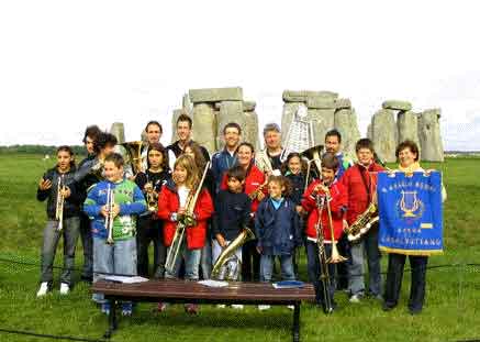 Visit of La Banda "Angelo Bodini" di Casalbuttano The first trip was organised by Helen and Don Palmer, who now live in Upper Woodford, but who used to play with orchestras and bands in Italy. The Casalbuttano Band was lead by 20 year old Andrea Maggioni, a former pupil of Helen's. It consisted of 24 musicians with ages ranging from 8 to 50 and accompanied by 30 friends and relations.